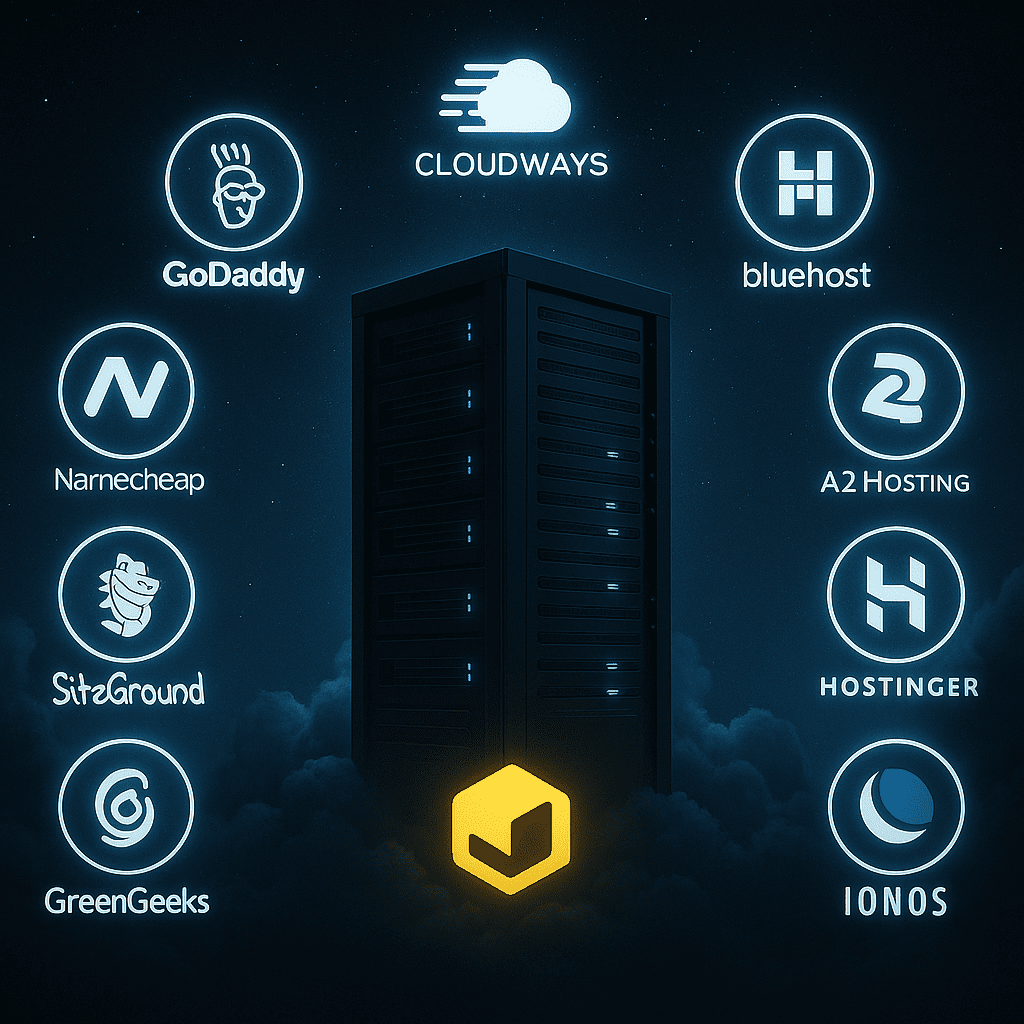 GoDaddy – Bluehost – Hostinger – HostGator – Namecheap – A2 Hosting – SiteGround – DreamHost – Cloudways – IONOS – GreenGeeks – وغيرها.